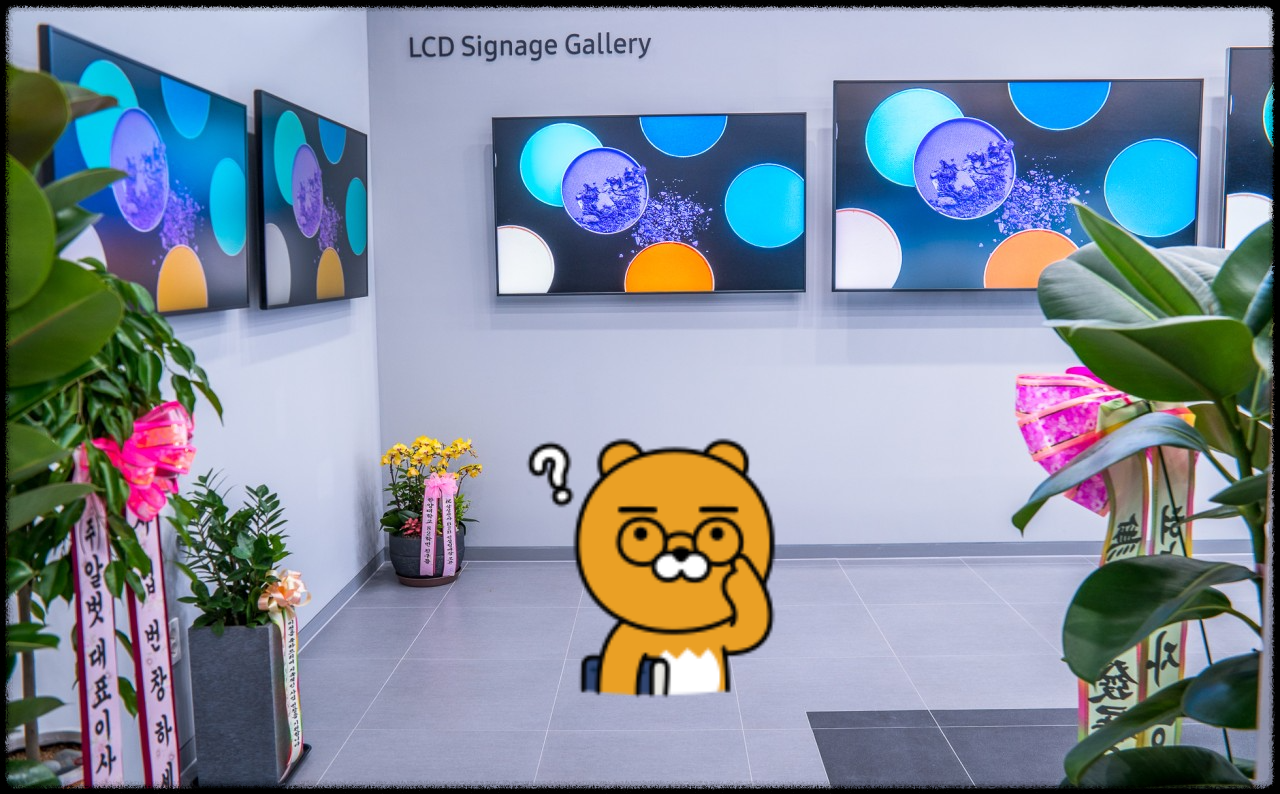 먼저 LCD 사이니지 전시 공간으로 시작되는 전시장은 여러 사이즈의 단독형 사이니지들이 한눈에 들어 옵니다. 크기를 바로 비교 할 수 있고, 밝기와 해상도를 한눈에 접할 수 있기 때문에, 어떠한 제품이 적합한지에 대한 결심이 바로 생기게 됩니다.